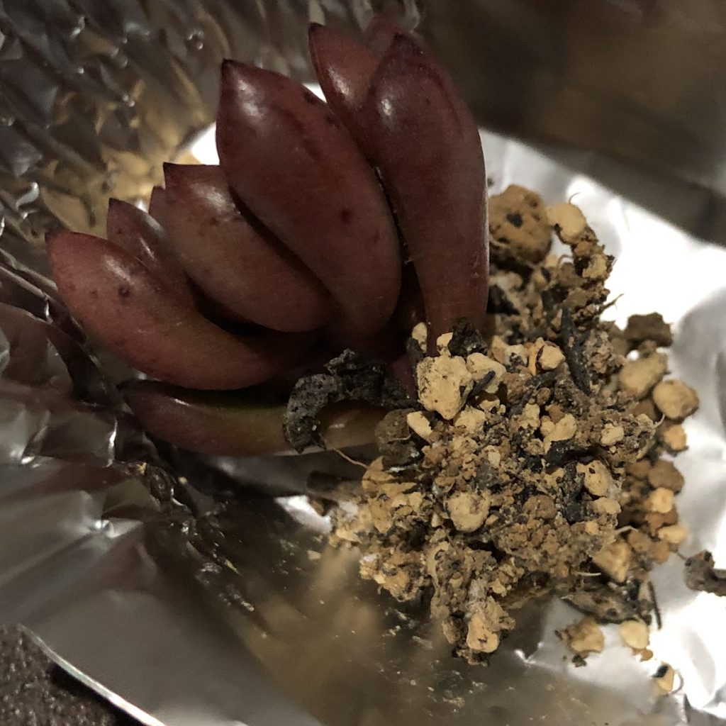 苗を逆さまにして根を上にしてます